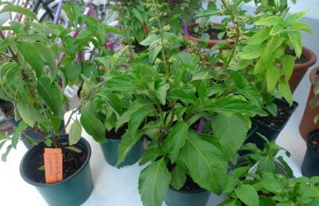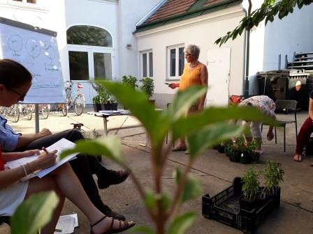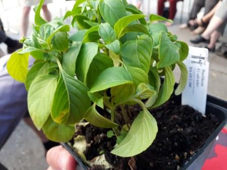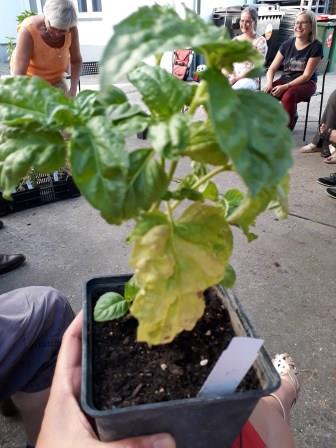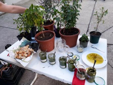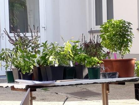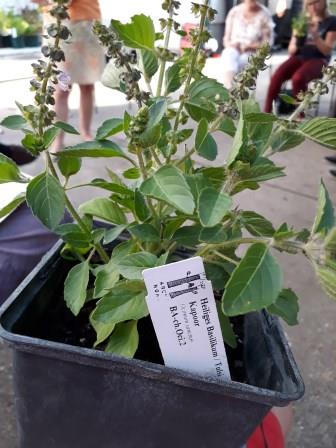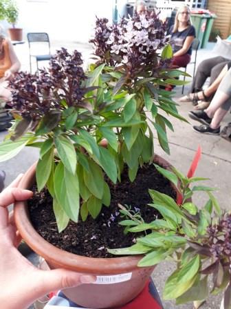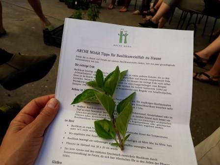„Vielfalt riechen und schmecken“ war das Motto, und das hat sich wahrlich eingelöst. Mir war schon klar, dass es viele unterschiedliche Sorten gibt, aber soooo viele! Allein bei der Arche Noah gibt es Samen von 49 Basilikum-Sorten, weltweit gibt es natürlich noch viel mehr – tausende! Eine kleine Auswahl konnten wir beim Workshop riechen und verkosten. Basilikum aus Asien und Südamerika war dabei, Mammut-Basilikum, Heiliges Basilikum, Madeira-Basilikum und Pfeffer-Basilikum, und noch viele andere Sorten, die ich mir nicht gemerkt habe. Jedes schaut natürlich anders aus, manche Blätter sind ganz ledrig und dick, manche zart und klein, manche bleiben bodennah, und manche werden ein richtiger Strauch. Aber was ich auch gelernt habe: mir schmeckt nicht jedes Basilikum. Es gibt schon Sorten, die recht streng im Geschmack sind und auch eher für Tees verwendet werden. Es zahlt sich aus durchzukosten und die eigenen Lieblinge zu entdecken! Arche Noah verschickt übrigens auch Jungpfanzen, darunter auch Basilikum, schaut mal in den Shop.