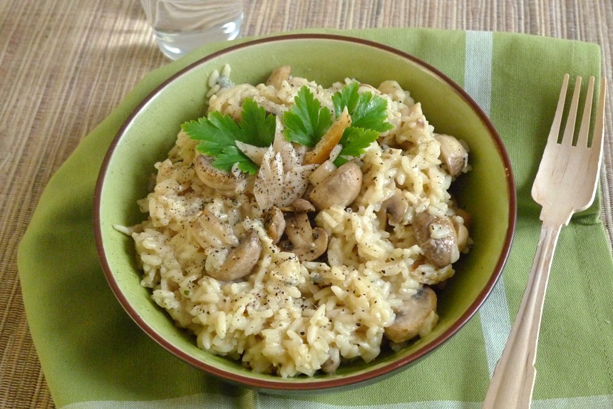 Risotto mit Champignons, Blue Cheese und Räucherforelle